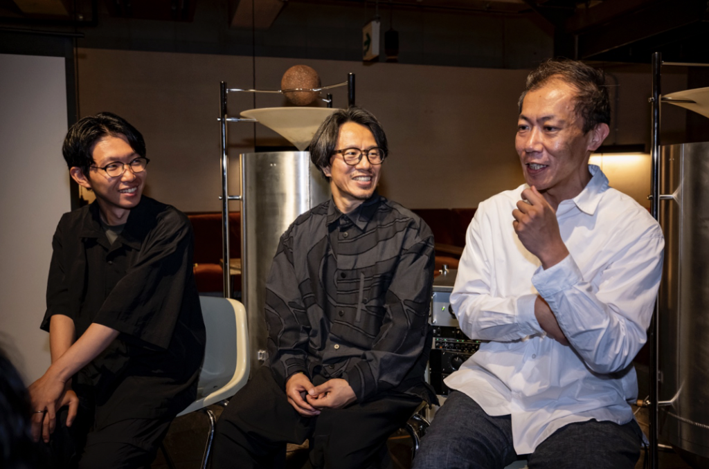 写真左からnoon by material recordデザイナーの小山田さん、&SPACE PROJECT代表の中井さん、noon by material record プロジェクトリーダーの後藤さん