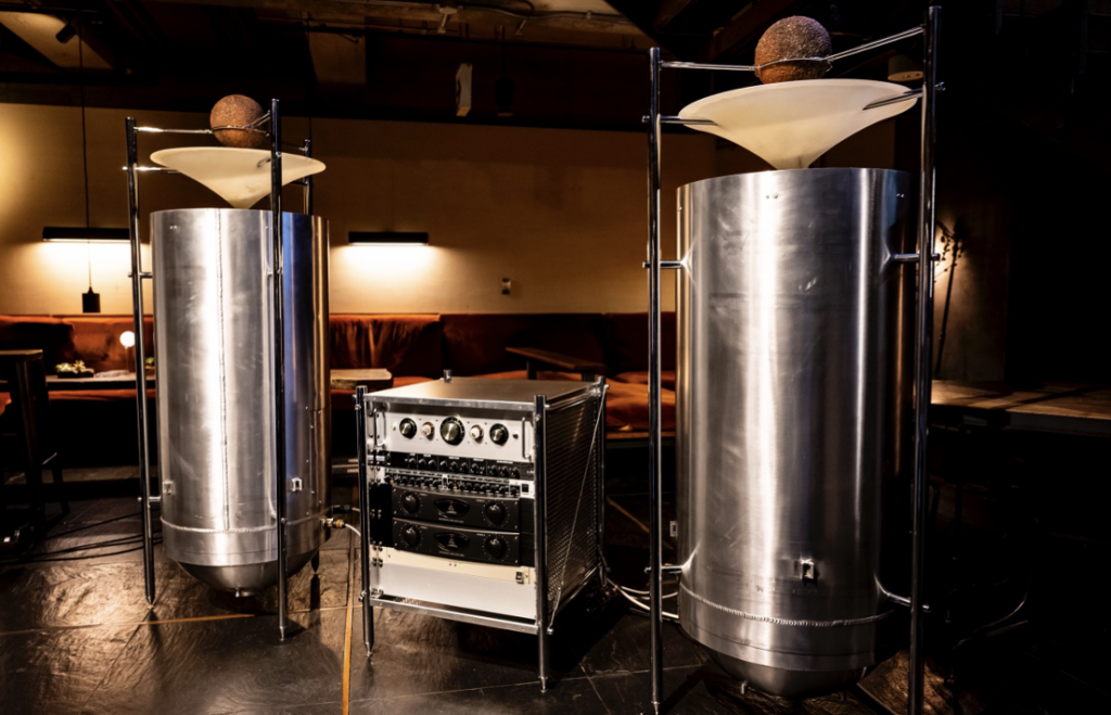 東京日本橋のDJラウンジでお披露目された、ロケットタンクスピーカーDEBRIS。宇宙を思わせるメタリックな質感がクールだ