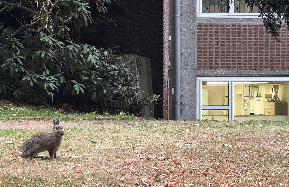 <キャプ>プロムナーデ沿いの緑地に生息する野ウサギ