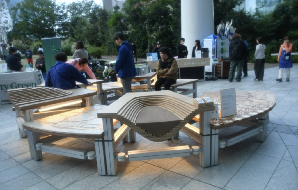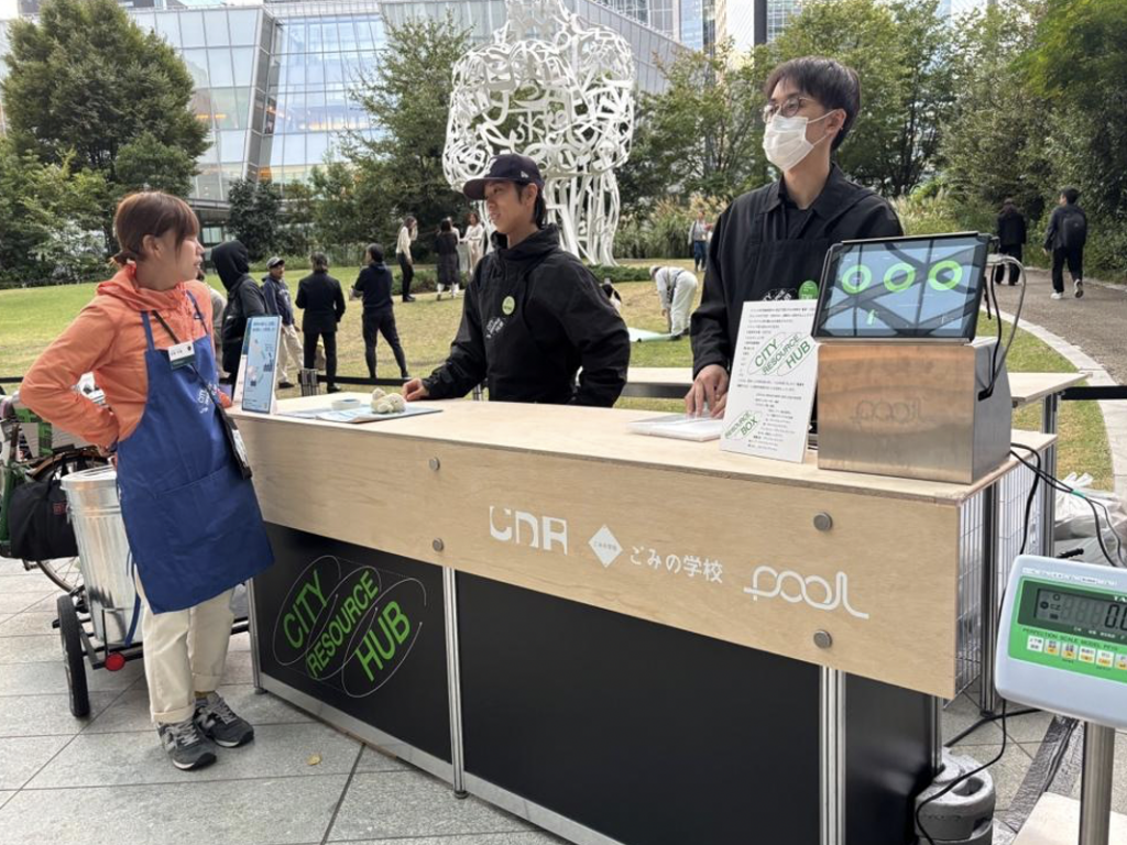 広場の一角にある「CITY RESOURCE HUB」は、ごみを資源として活用する画期的なステーション。イベントまわりで出た不要物を回収、分別、分析し、都市型の資源循環のあり方を提案していた。期間中にどれだけのごみが出て、そのうちどれだけを資源として循環できたかを数値などで“見える化”。ミズアブの幼虫たちが生ごみをせっせと分解中の「ミズアブコンポスト」も展示されており、うっかりフタを開けてしまって激しく後悔するハメになった(フタの下には無数の幼虫がグネグネと!)。