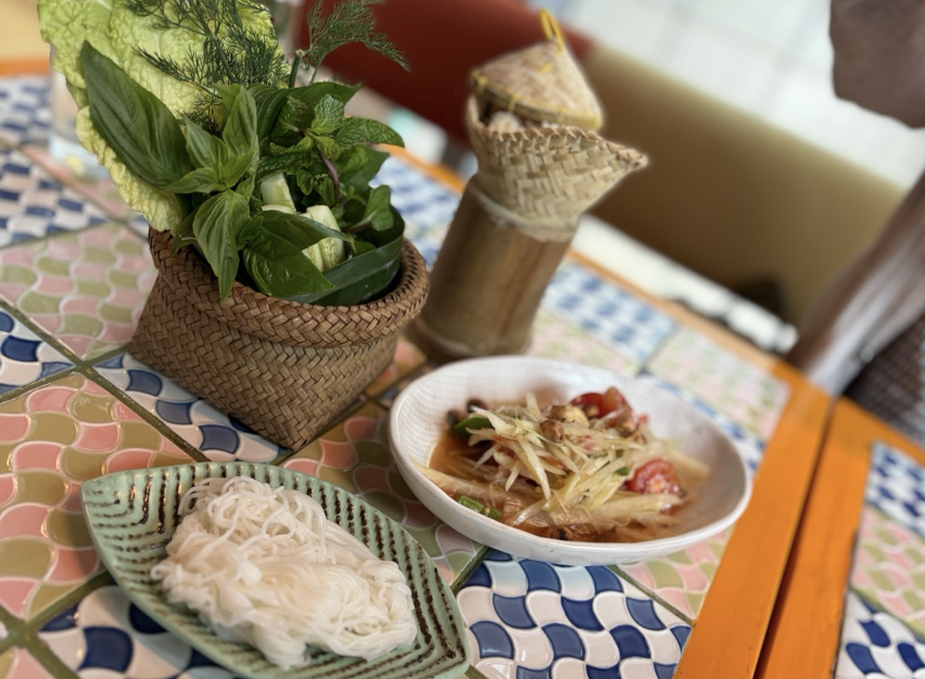 せっかくバンコクに来たのだから、本場のタイ料理も味わいたい! というわけで、タイの東北、イサーン地方の料理を食べに、バンコク中心部の「イサーン バンコク」に向かう。バンコクや世界の美食シーンではいま、タイ料理の特徴である辛み、酸味に加えて、発酵を活かした野生的なイサーン料理が再注目されているらしい。