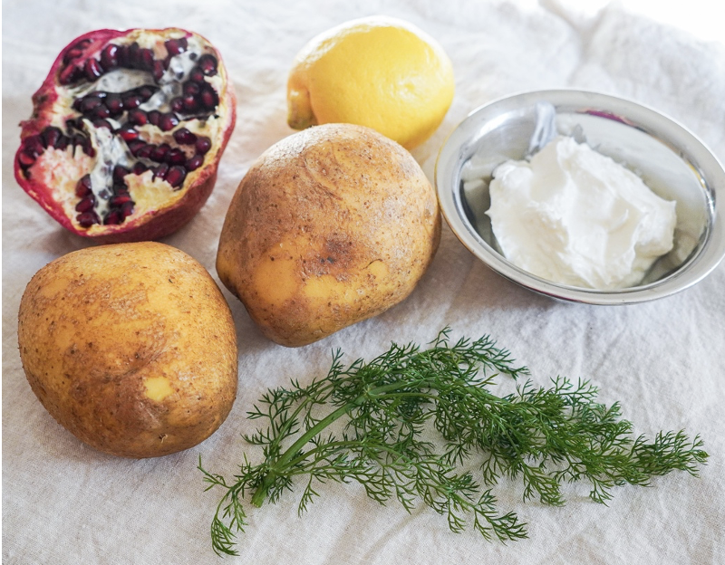 細切りにしたジャガイモの歯ごたえが心地よい、ジャガイモと西洋ネギ「リーク」をつかったガレットです。ポイントは、しっかりと焼き色がつくように焼き上げること。ディルが豊かに香る、レモンの酸味がきいたソースとの相性は抜群です。みずみずしく弾けるざくろをトッピングして、アクセントを楽しみましょう。ホリデーシーズンに、ぜひチャレンジしてみて!