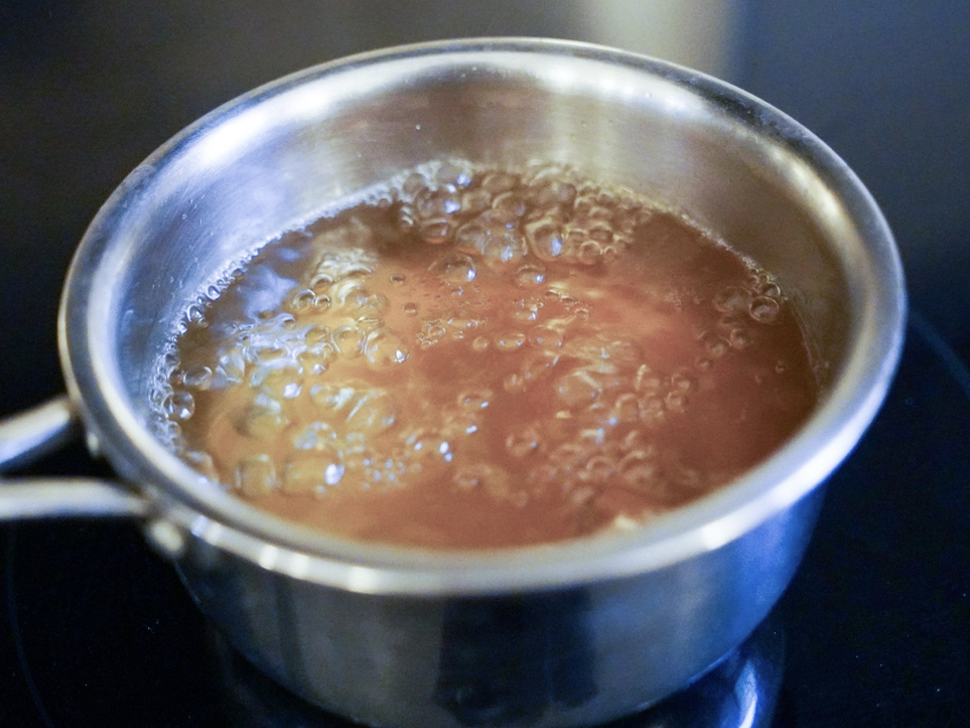 1.Aの材料をすべて合わせ、小鍋に入れて中火で加熱する。フツフツとした状態を2分ほど保ってから火を消す。