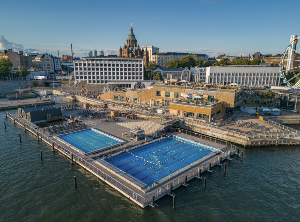 ヘルシンキの中心部、カタヤノッカのマーケット広場の横にある「アッラス・プール」は、サウナとプールが融合したアーバンスパ施設。バルト海に浮かぶような絶景のロケーションでプールやサウナで楽しめる、市民にも観光客にも人気のスポットだ。