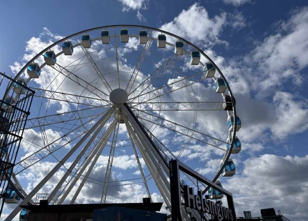 埠頭にある観覧車「SkyWheel」。ゴンドラのひとつが木製のサウナになっており、上空40mの港の絶景を見ながらととのい体験が可能