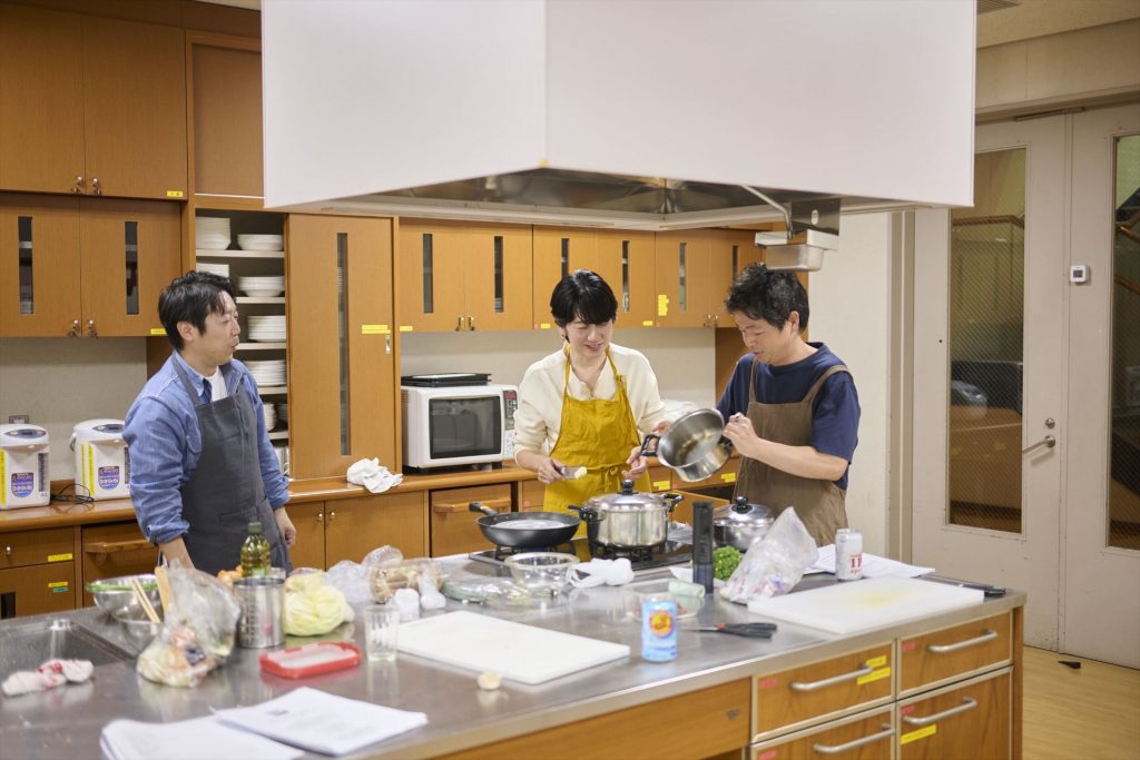 2つ目の「男子ごはん塾」では、包丁を握ったことのない男性に向けて、料理雑誌の編集長だった影山さんが簡単にできる惣菜のつくり方などを教えている。