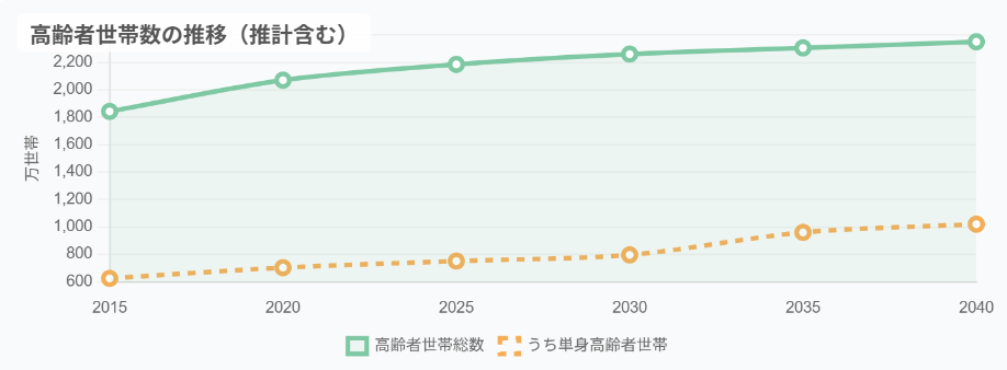日本は世界有数の長寿国だ。平均寿命は延び続け、2024年には人口の29.3%が65歳以上となった。今後20年ほどかけて、その割合はさらに上がると予測されている。同時に高齢者世帯も増えており、2035年には2035万戸に達する見込みで、そのうち約47%が単身になるという。