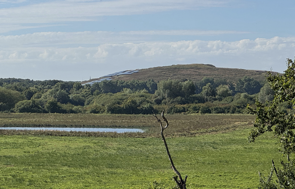 遠くに見える緑の丘は、高さ約45mのかつての中央埋立地。1980年〜2016年、ミュンスターの家庭ごみが投棄され、埋められていた。いま、この丘を含む一帯はリサイクル・廃棄物処理センターとして、大規模な改修と再生が進められている。多様な動植物が生息する場所であると同時に、持続可能な開発を学ぶ教育の場、さらには地域を支えるエネルギー供給源に進化中だ。