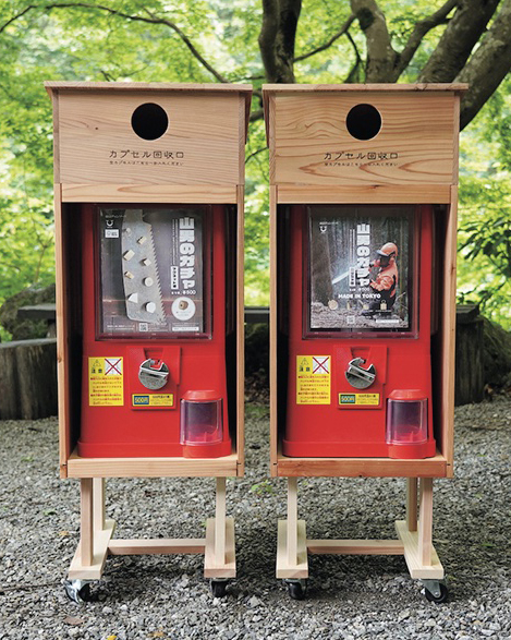 木を1本まるごと使い切るため、枝や幹の細い部分から作ったおもちゃを販売する「山男のガチャ」も展開