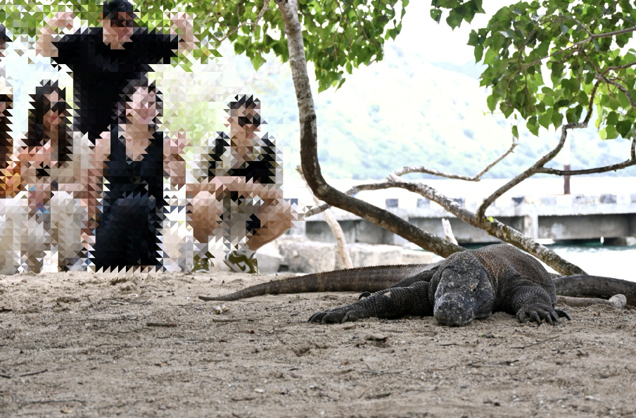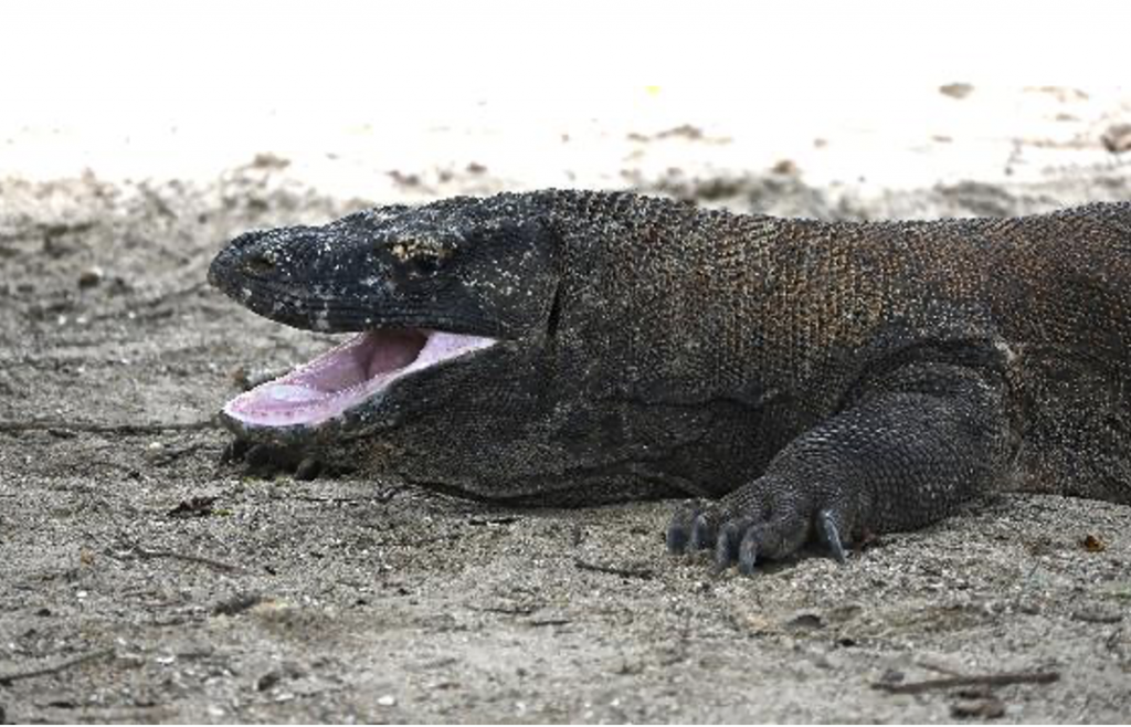 彼らはかなり人間慣れしているようで、適切な距離を保ちつつ、写真撮影に応じてくれる(?)コモドドラゴンも多かった。口を開けてあくびのようなしぐさを見せたり、二股の舌をチロチロと出したりはするが、鳴き声を発したり、威嚇をしたりはいっさいなく、事前に想像していた以上に泰然自若だった。