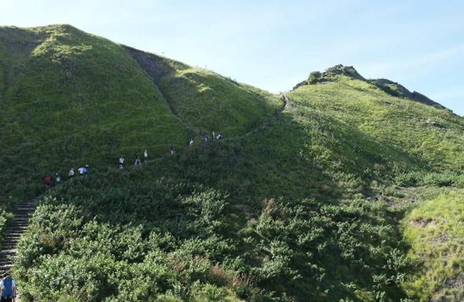それが上写真の風景! 緑の山々と、白砂ビーチ、真っ青な海とのコントラストが描き出す曲線美は、まさに地球が生み出したアート。常夏のコモド諸島、ここパダール島も例外ではなく、日差しをさえぎるものが何もないなかでの往復約1時間のハイキングにはなるが、この絶景を目にすれば、「登ってよかった」と心底から思えるのだ。