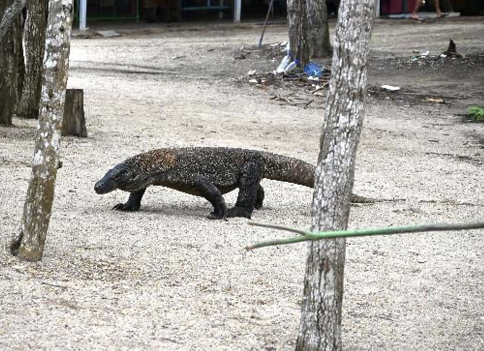 さらに歩を進めると、今度は歩くコモドドラゴンを発見! たくさんの観光客にカメラを向けられるもその歩みは悠然としており、ノッシノッシと海辺のほうに向かっていく。