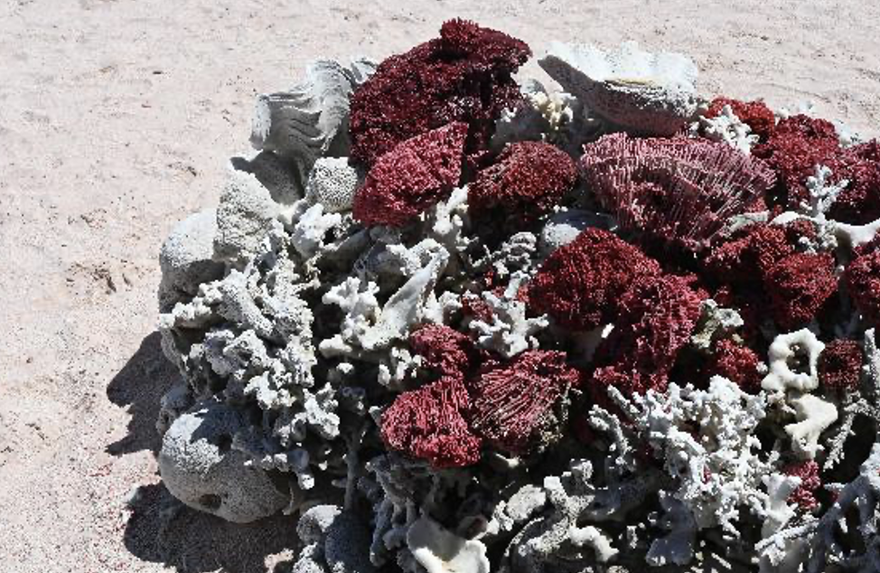「オーガン・パイプ・コーラル」と呼ばれる赤いサンゴが死んで骨格を残し、ピンクビーチをつくり上げる