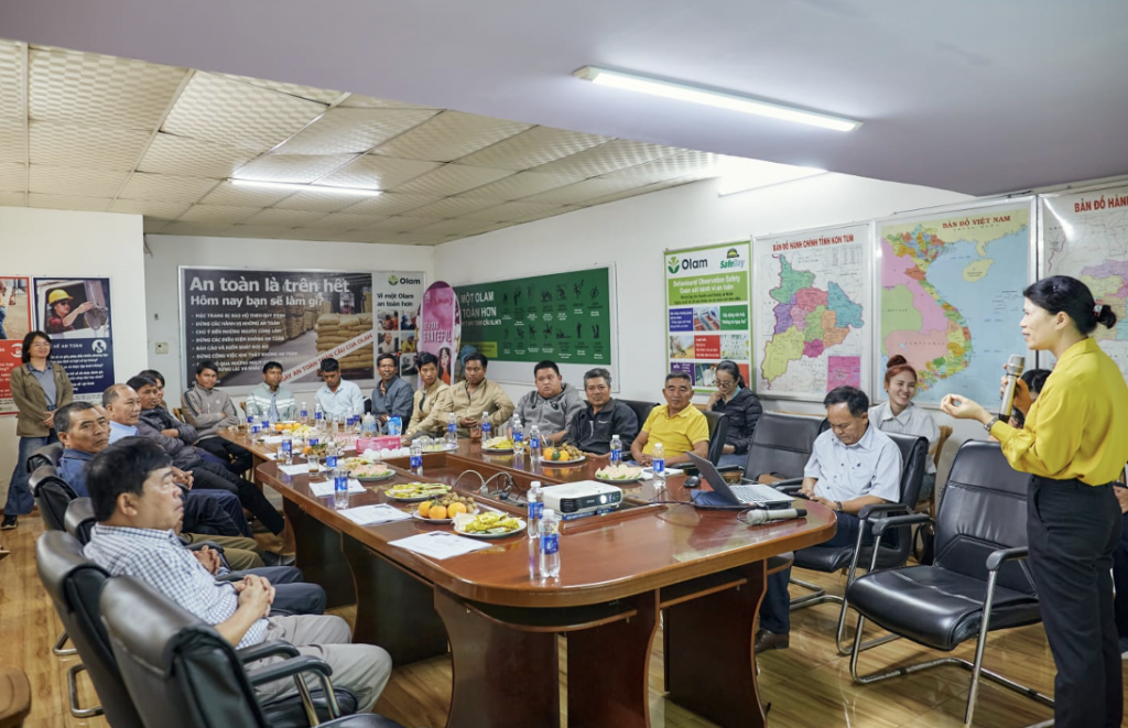 水不足問題の解消はコーヒーの安定生産を実現し、農家の収入や生活の質の向上をサポート。さらに、灌漑(かんがい)を適切に使用するための営農指導も実施しました。ベトナムでは家族経営の小規模農園が多く、最新の知識を得る機会が限られています。そこで、土壌の蒸散プロセスや土壌水分と作物の品質の関係性からレクチャー。コーヒーの木の開花の観察と、灌漑タイミングの判断についても伝えられました。さらには適切な灌漑水量や、過剰灌漑が作物や環境に与える影響なども指導。効率よく、高品質のコーヒーを育てるための知識を身につけていただきました。