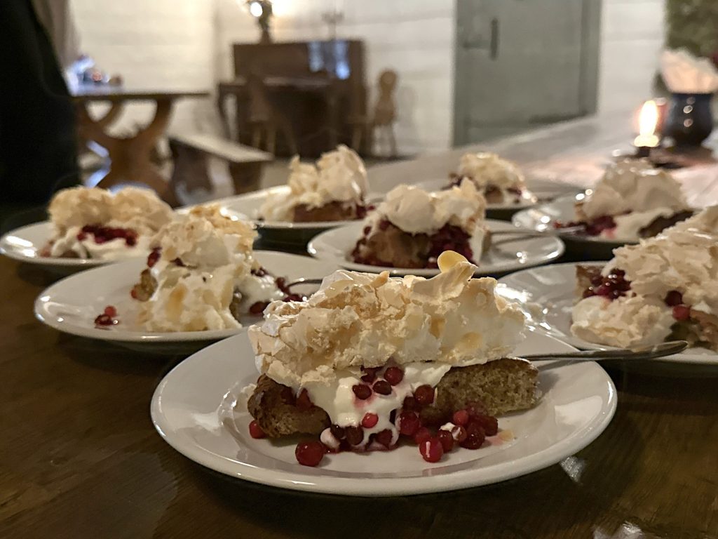 お行儀よく出番を待つデザート。メレンゲと生クリーム、木の実がたっぷり