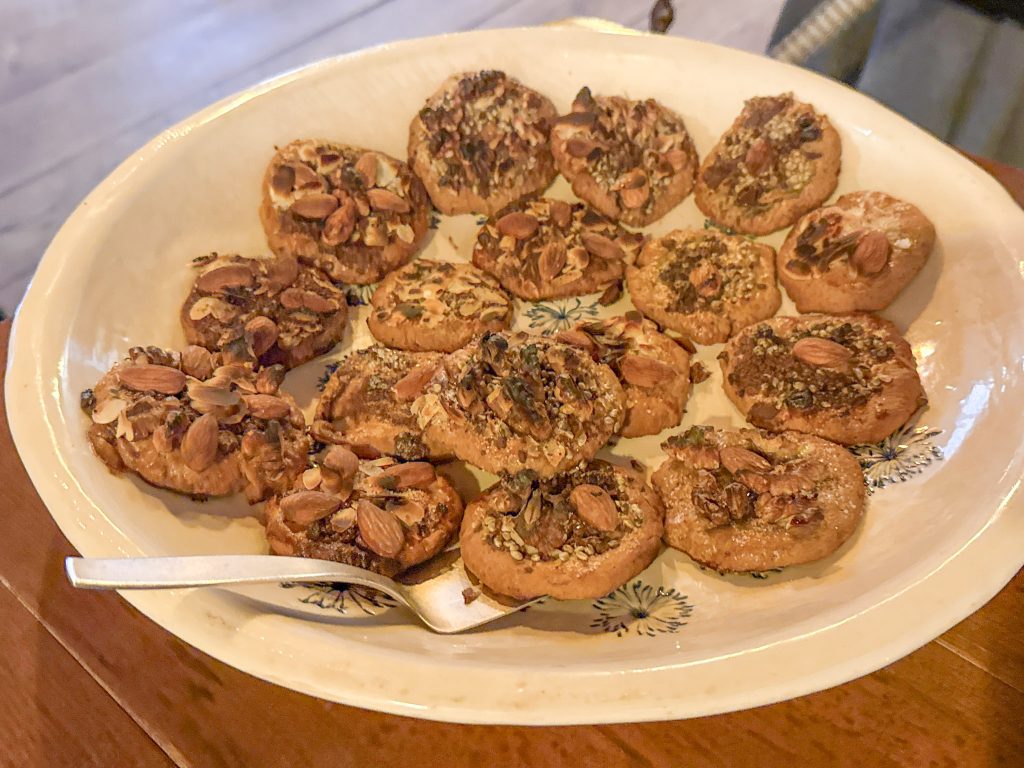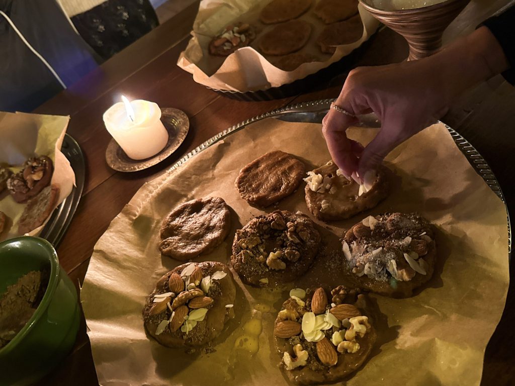 飾りつけを終えて、あかあかと燃えるかまどの中に入ったボタンたち。再び姿をあらわしたときには、こんがりと輝く黄金の姿に変わっていた。何枚でもぺろりといける素朴な甘みに脳がしびれる。心地よいクリスマスの魔法をひと足お先に。