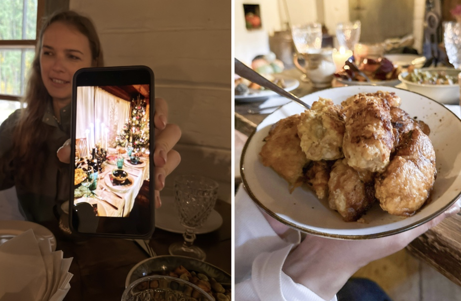左:リガさん家(ち)のきらめくクリスマスの食卓。右:絶品だった豚の煮込み