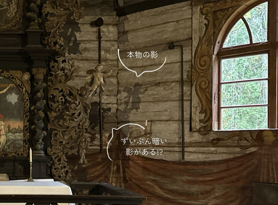 「この影、実は画家の手によるものなんです。キャンドルの光が揺れる祭壇を荘厳に見せるための、いわばトリックアート。面白いアイデアですよね」(ガイレさん)