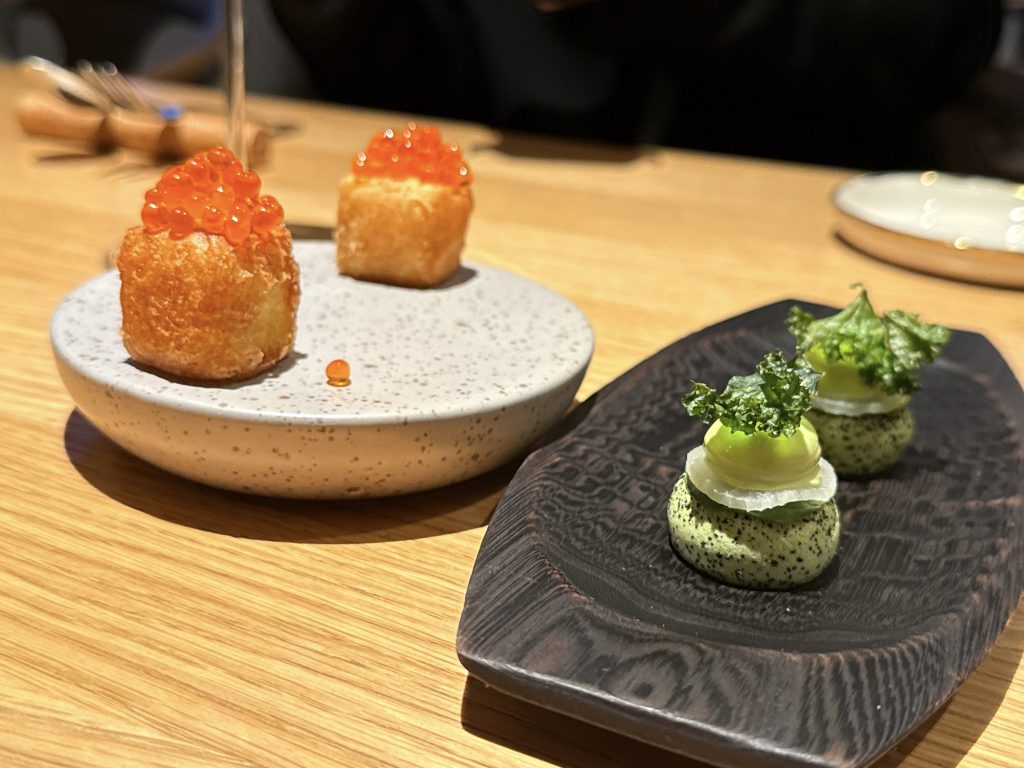 ジャガイモとイクラ、ケールとラディッシュの前菜からスタート