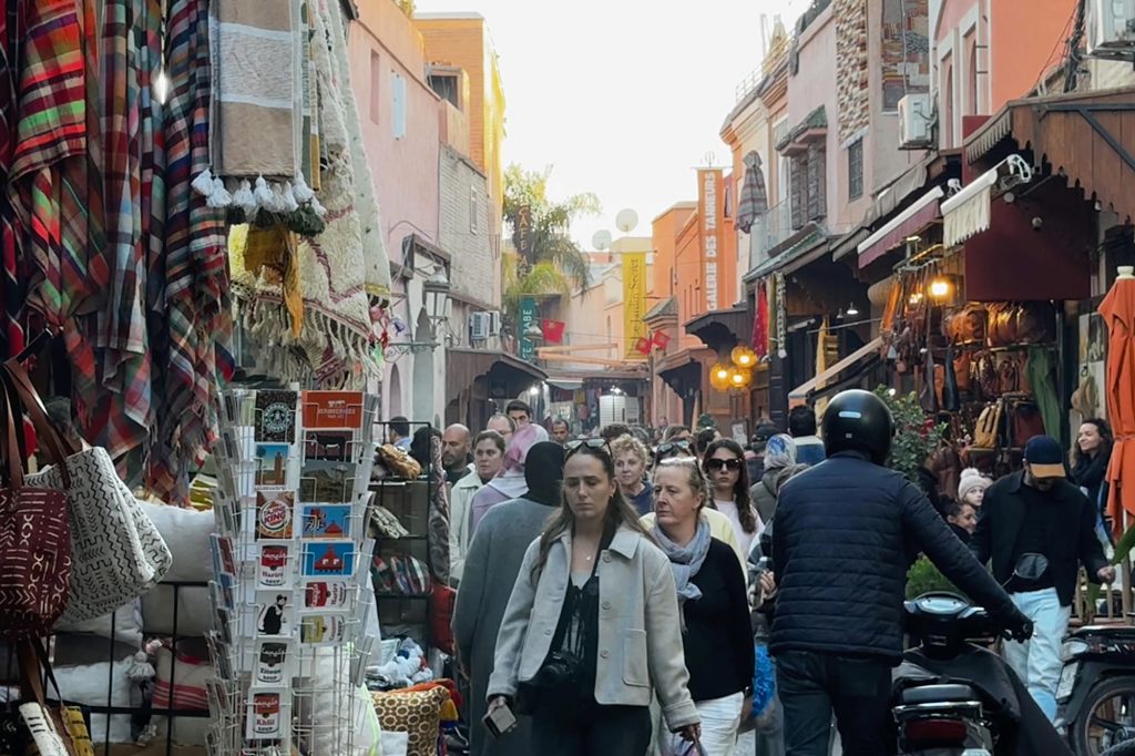マラケシュのメディナ。狭い路地に地元民と観光客がひしめく