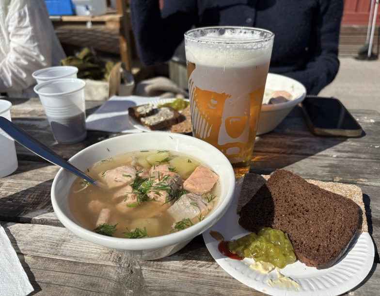 フィンランドのランチの定番、ディルが香るサーモンスープ。 サーモンやジャガイモ、ポロネギを煮込んで、生クリームを加えて仕上げる