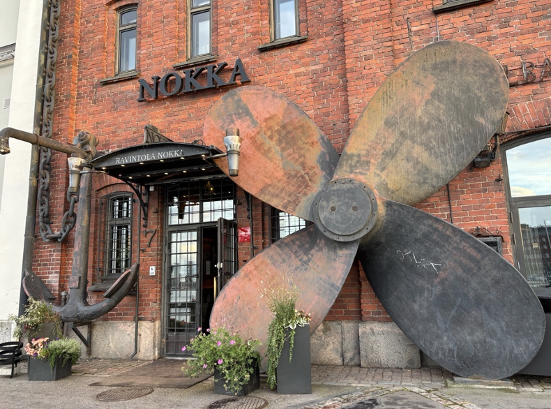 港沿いにある、古いレンガ造りの倉庫を改装したノッカ。大きないかりが目印だ